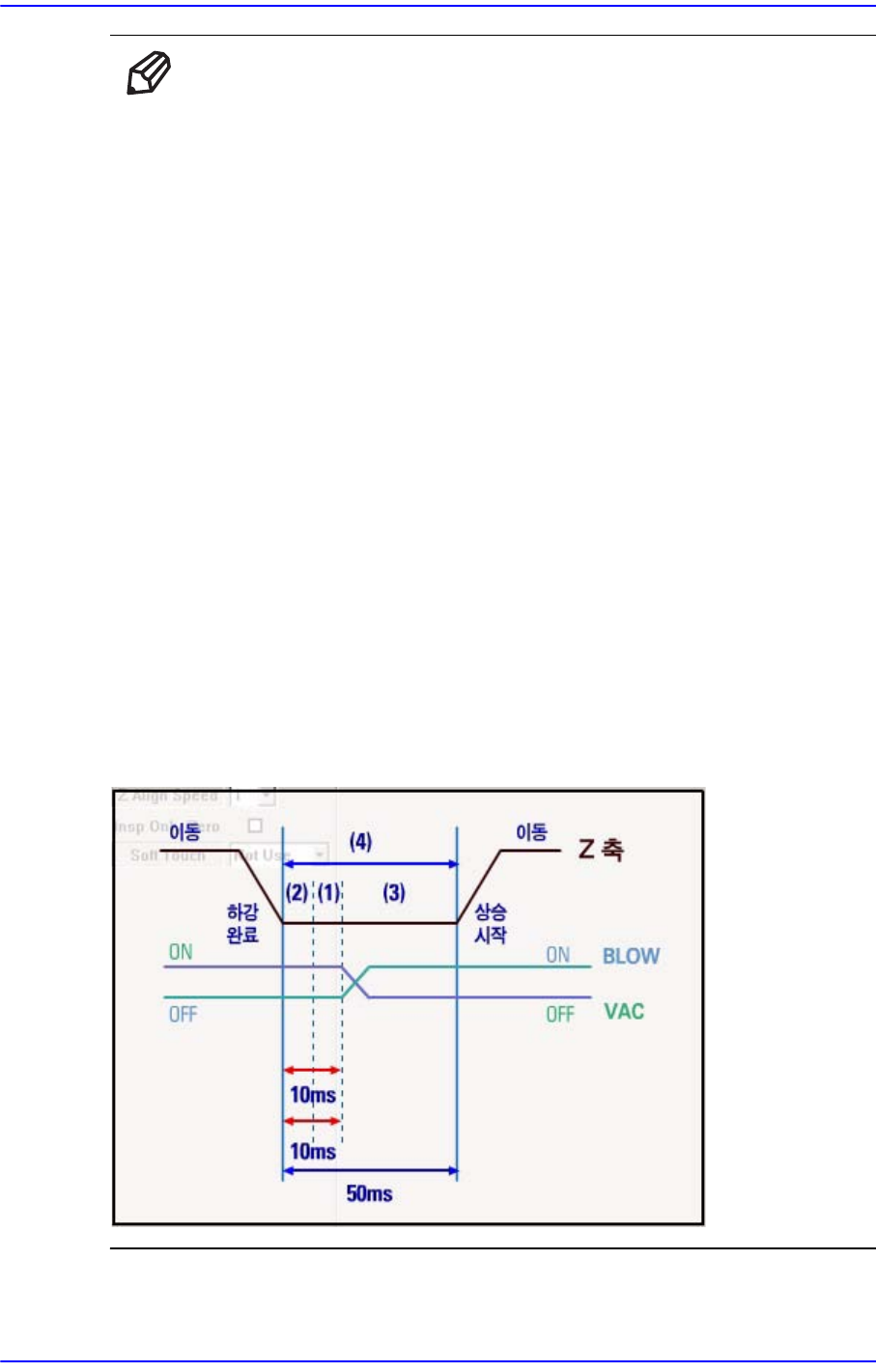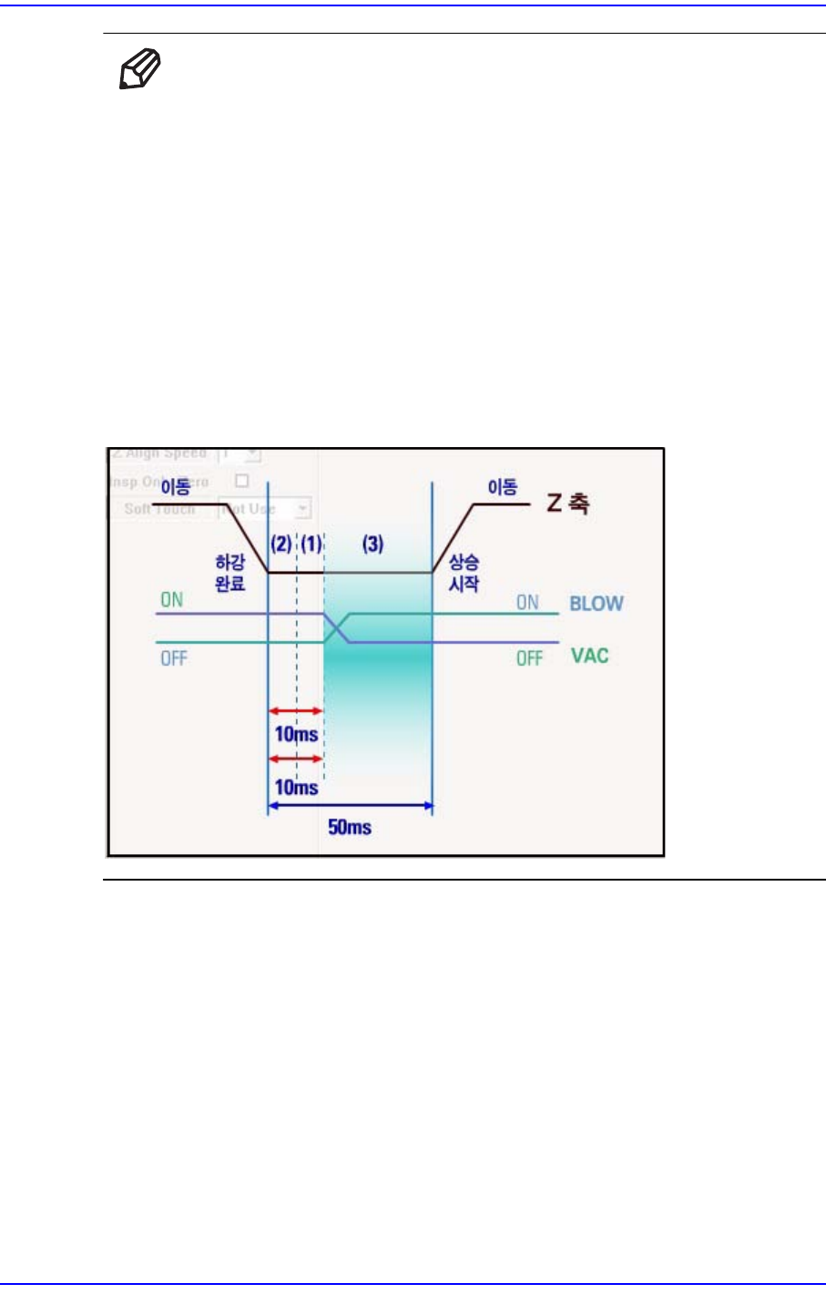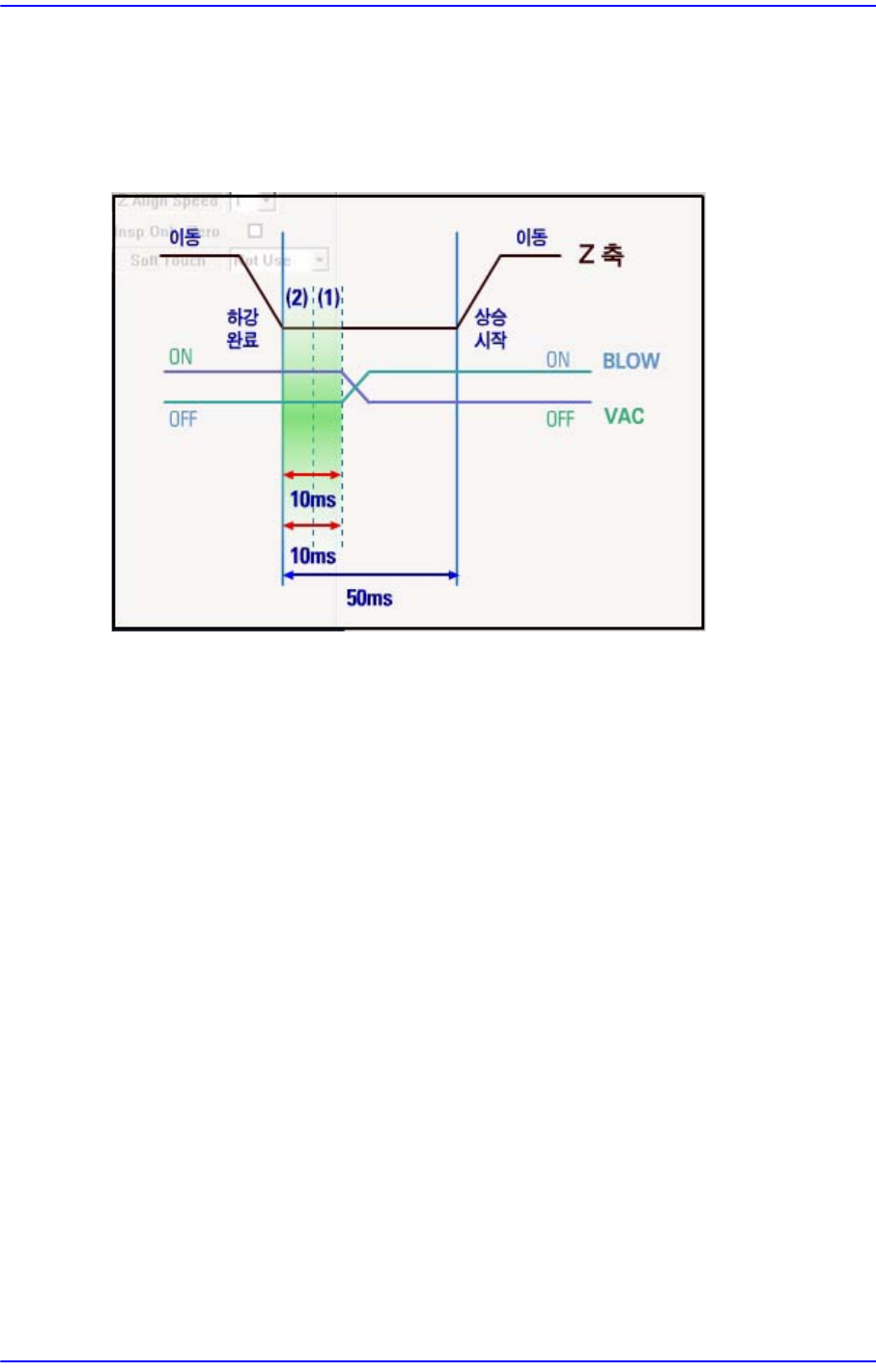Vac off 10 은 장착을 위해 Z축이 다운을 완료한 시점부터 10ms뒤에 진공압을