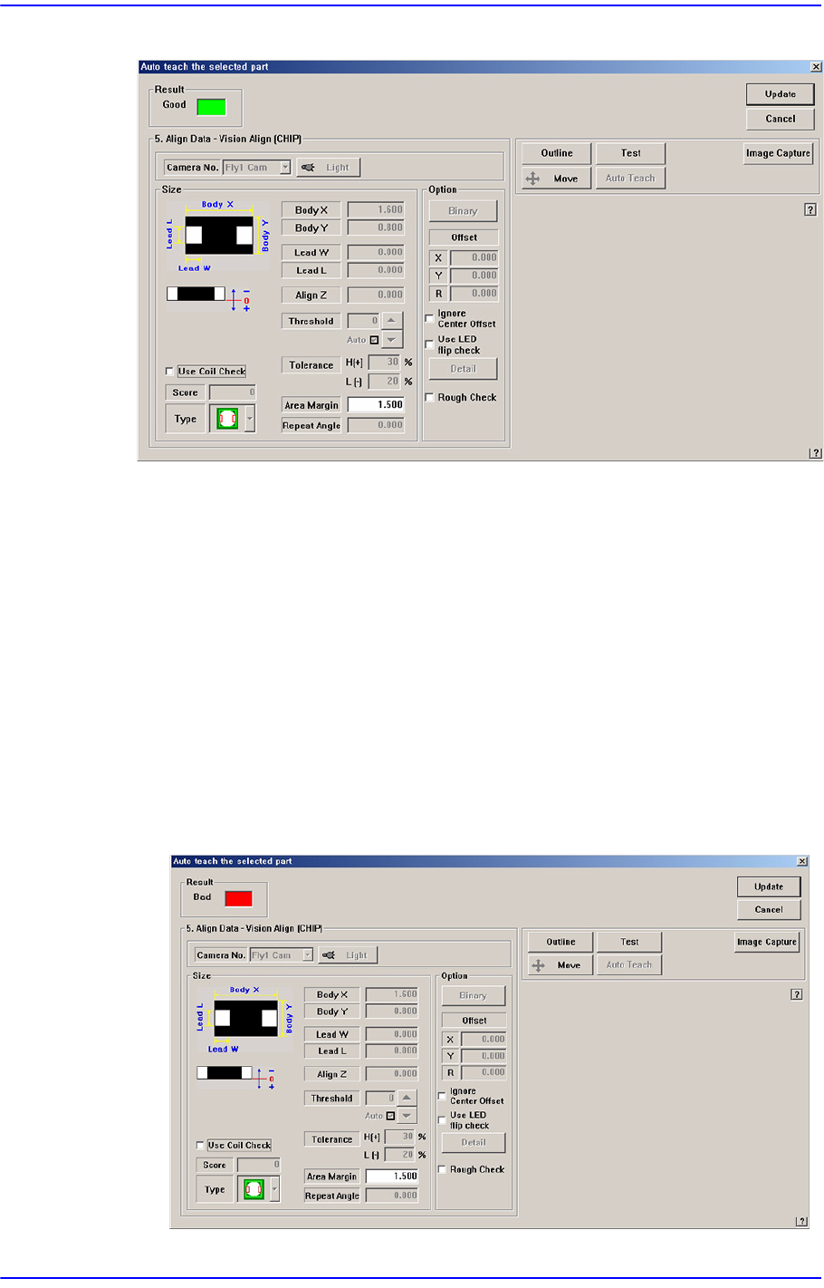 Auto Teach 결과데이터를 표시합니다 . Auto Teach에 실패하면 다음과 같은
