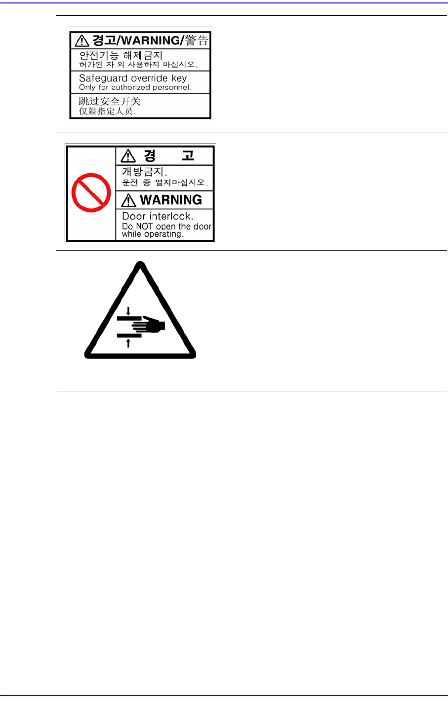 라벨이 떨어지거나 손상된 경우에는 해당 그림을 참고하여 새로운 라벨을 지정된