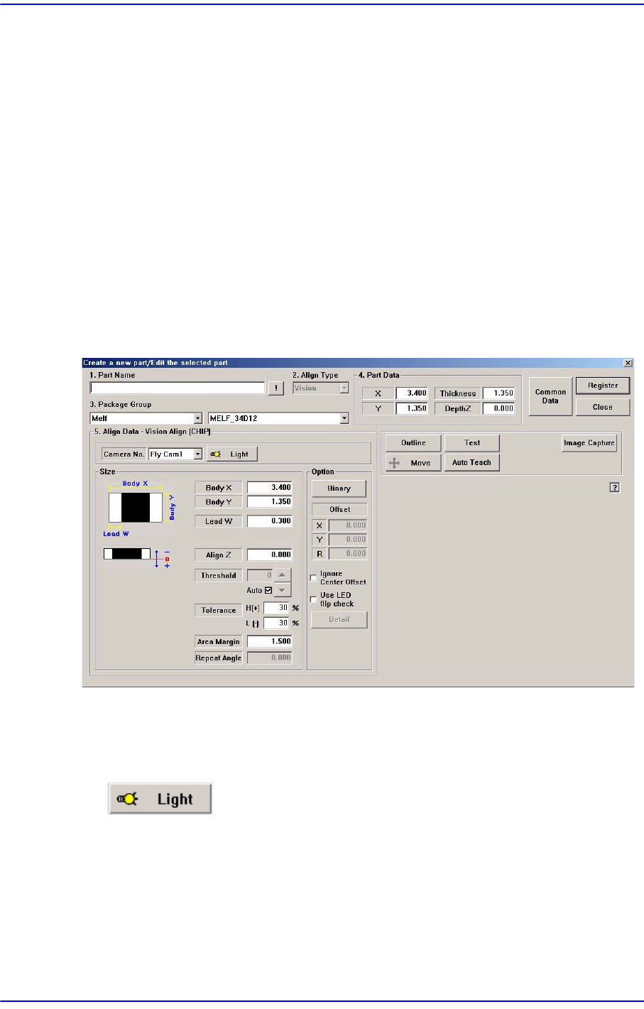 부품을 인식할 Camera의 조명을 설정합니다 . 자세한 사항은