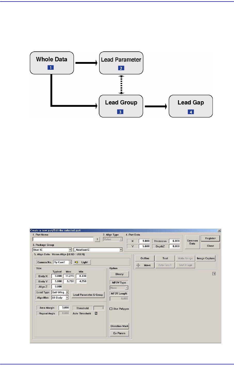 7-54 Samsung Component Placer SM 411F/411FN Administrator ’ s Guide 7.1.4. User IC 부품데이터 설정 User IC 부품에 관한 Align 데이터를 설정합니다 . 먼저 User IC 부품데이 터를 설정하 기 위한 기본 개념을 설명합니다 . 다음 그림을 참조 하십시오 . 그림 7.23 User IC 부품데이터 설정의 기본 개념 1:…