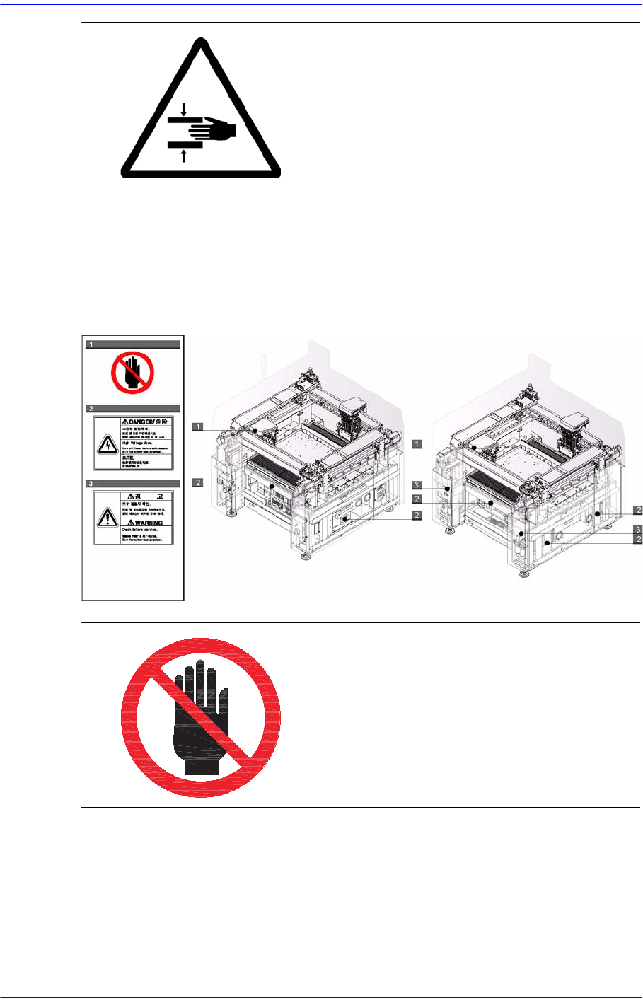머리말 v 장비 후면 장비의 후면에는 다음과 같은 라벨들이 부착되어 있습니다 . 그림 1.2 장비 후면에 부착된 안전 라벨 커버 내측이나 스위치 부위에 고전압이 흐르 고 있으니 감전에 주의하시기 바랍니다 . 유지보수 전에 반드시 주전원을 차단하십시 오 . 운전 중 도어를 열지 말 것 . 이 라벨이 부착되어 있는 곳은 이동체가 내 장되어 있으므로 구동 중 커버를 열고 신체 의 일부를 장비 …