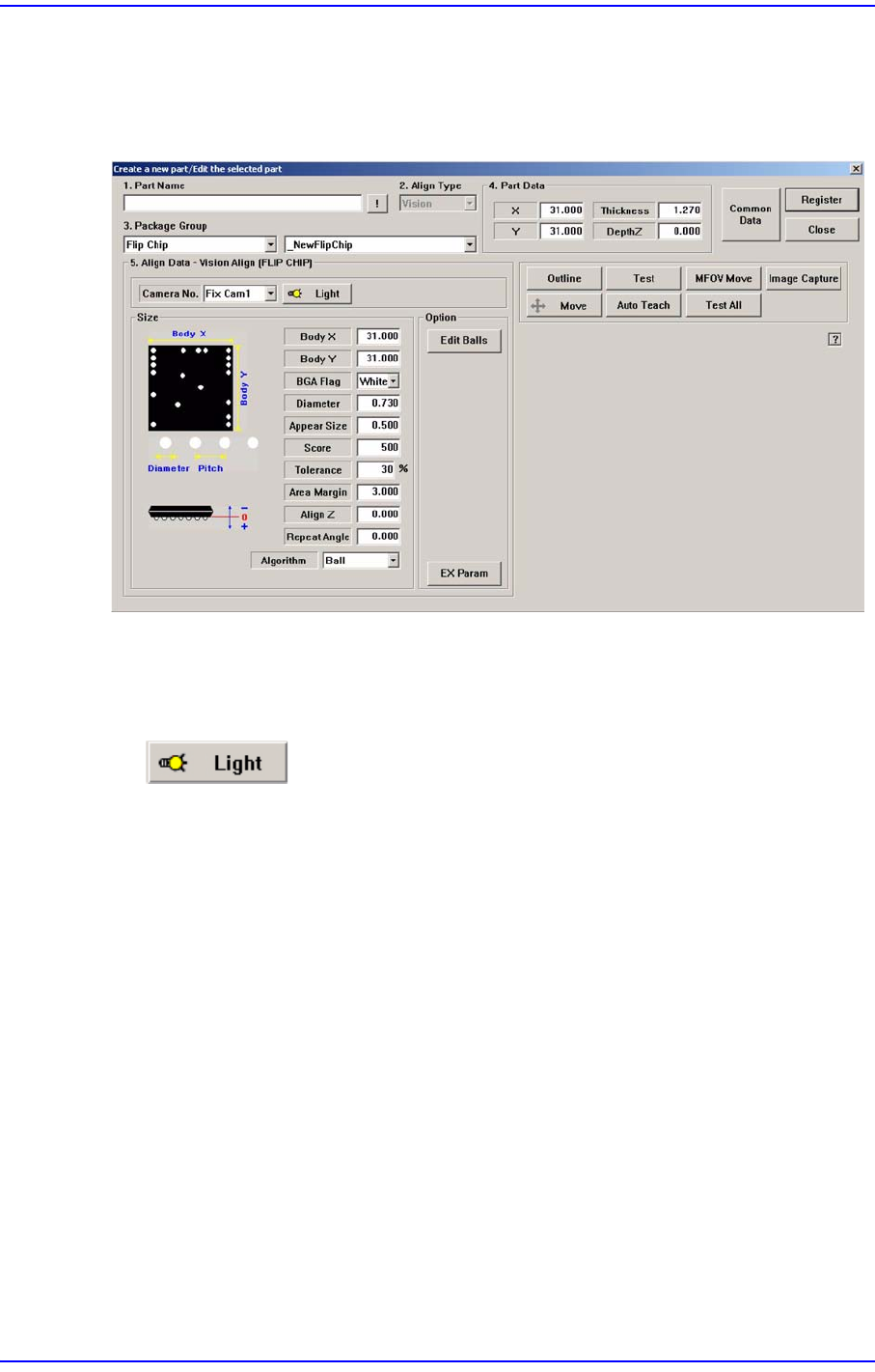 Flip Chip 부품에 관한 Align 데이터를 설정합니다.
