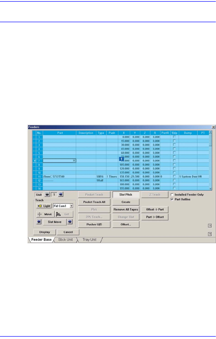 보박스가 표시되는데 “Parts” 대화상자에서 등록된 부품 중 “Tape Feeder”