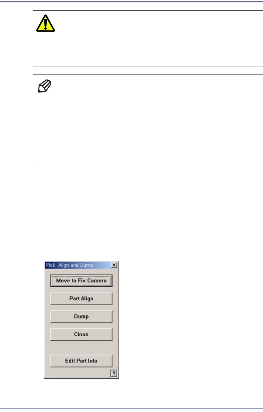 8-7 공급장치 설정 주 의 작업 중 해당 기능을 이용하면 해당 피더의 흡착 성공율을 올릴 수 있지만 , 포켓티치를 수행하는데 시간이 소요되며 , 흡착점 (Pickup Point) 좌표가 보정됨으로써 동시 흡착을 하지 못 할 수 도 있습니다 . 메 모 포켓티치를 수행하면 , 포켓 티치시 획득한 옵셋정보 를 자동 으로 반영하여 테이프 피더의 홈 옵셋을 자동으로 보정 합니 다 . 단 옵셋 값…