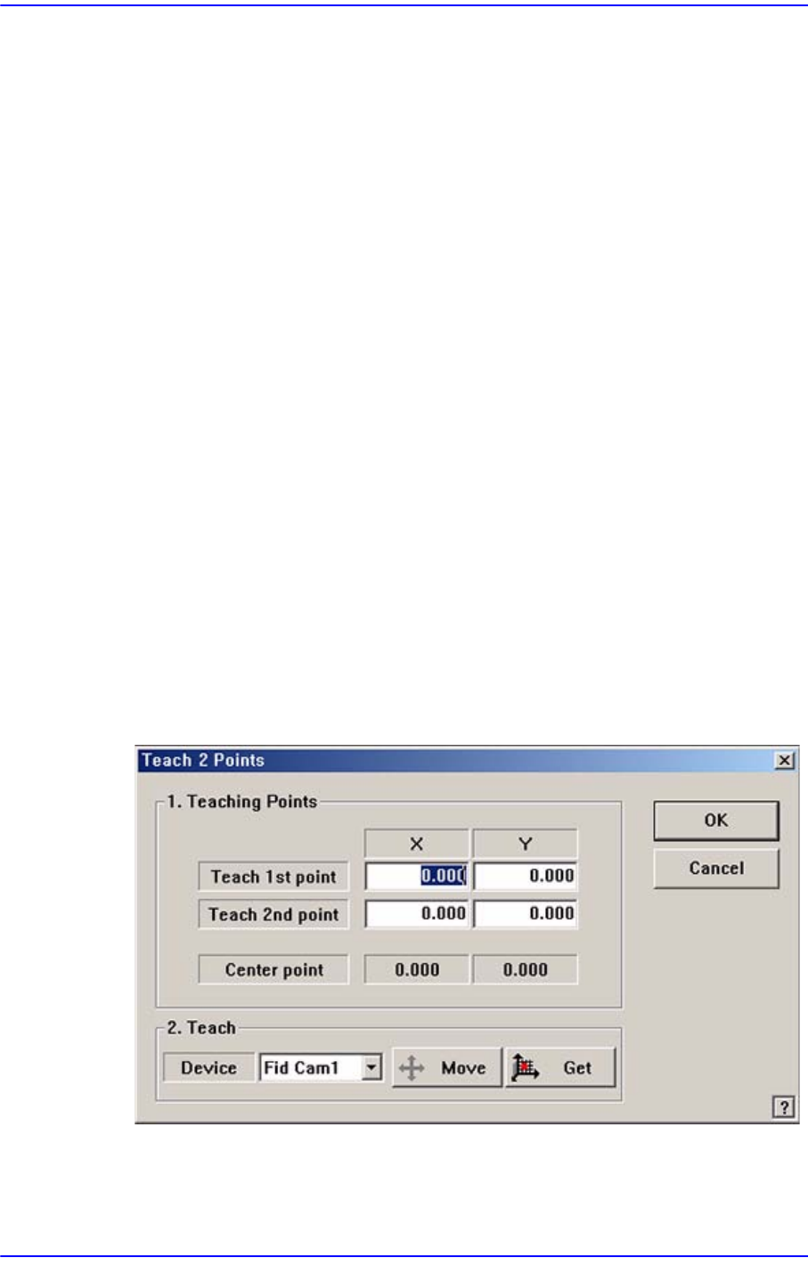 티칭함으로써, 부품의 중심을 티칭하는 방법입니다. 이 버튼을 클릭하면 다음
