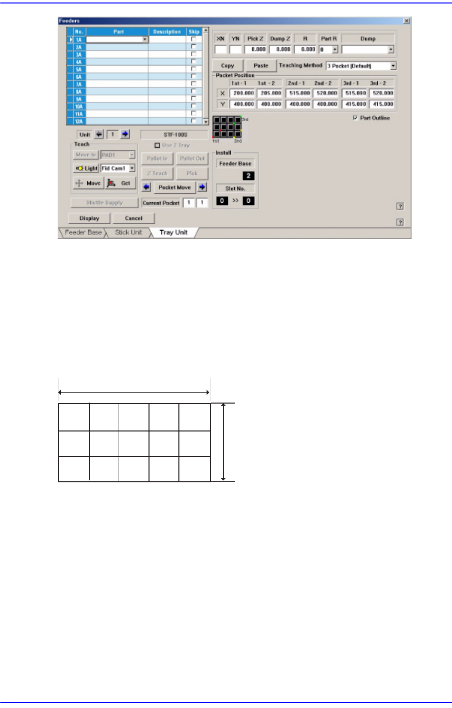 Tray Feeder의 각종 데이터를 설정합니다. “Tray Unit”을 선택했을 때, 초기의 화면