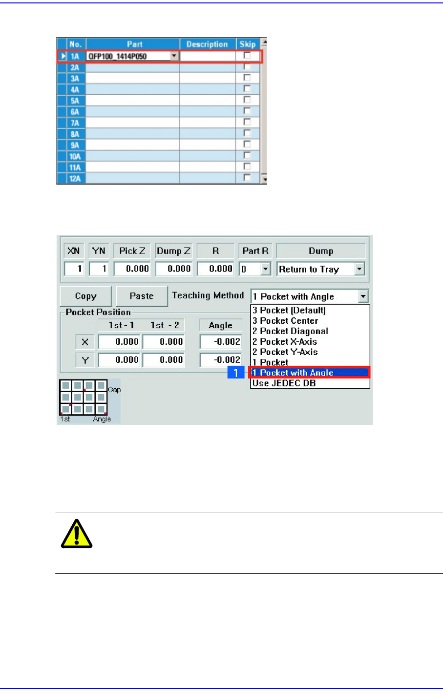 8-24 Samsung Component Placer SM 411F/411FN Administrator ’ s Guide 선 꼭지점 좌표 , X, Y 방향 Pitch 를 각각 입력합니다 . <1Pocket> 아래 그림과 같이 1 번 Pocket 의 대각선 꼭지점 좌표와 X, Y 방향 Pitch 를 입력합 니다 . <1Poket with Angle> 이 기능은 피듀…