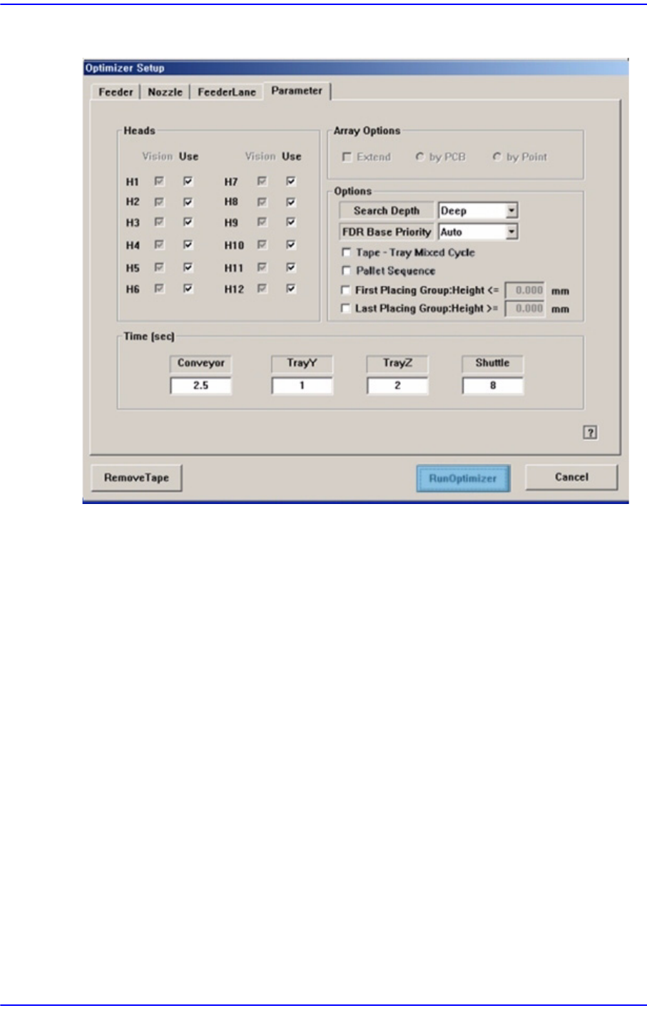 10-9 Optimization Auto Optimizer 가 자동으 로 피더를 배치합니다 . Front Optimizer 가 전면 피더베이스의 피더를 우선 배치합니다 . Rear Optimizer 가 후면 피더베이스의 피더를 우선 배치합니다 . <T ape-T ray Mixed Cycle> 체크박스 T ray Feeder 에서 부품을 교체하는 중에도 T ray Fe…