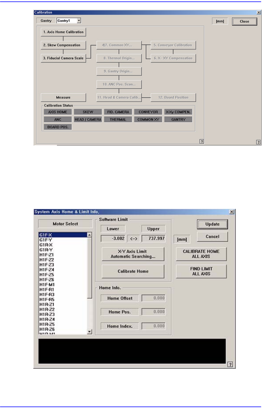 12-12 Samsung Component Placer SM 411F/411FN Administrator ’ s Guide 12.3.1. Axis Home Calibration 각 구동축 이동위치의 한계값을 설정합니다 . 이 버튼을 선택하면 다음과 같은 대화 상자가 표시됩니다 . 그림 12.7 “ System Axis Limit Info . ” 대화상자 <Motor Select>…
