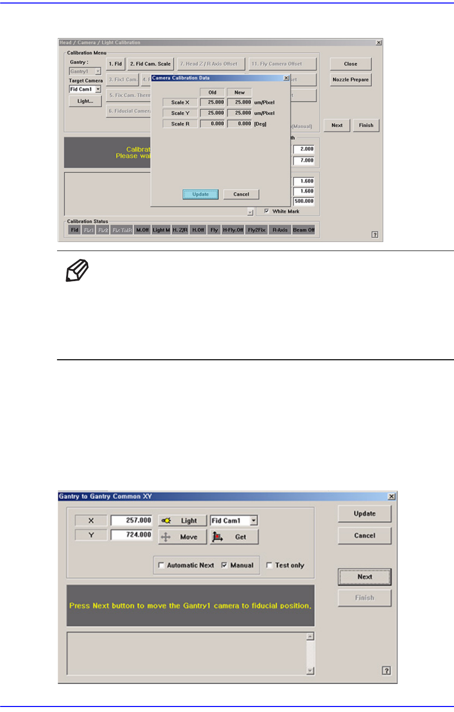 12-20 Samsung Component Placer SM 411F/411FN Administrator ’ s Guide 하십시오 . 메 모 Fiducial Camera 의 캘리브레이션 기준값은 다음과 같습니 다 . Fiducial Camera (FOV 12) ScaleX:23.0~27.0( μ m/pixel) ScaleY : 23.0~27.0 ( μ m/pixel) 12.3.4…