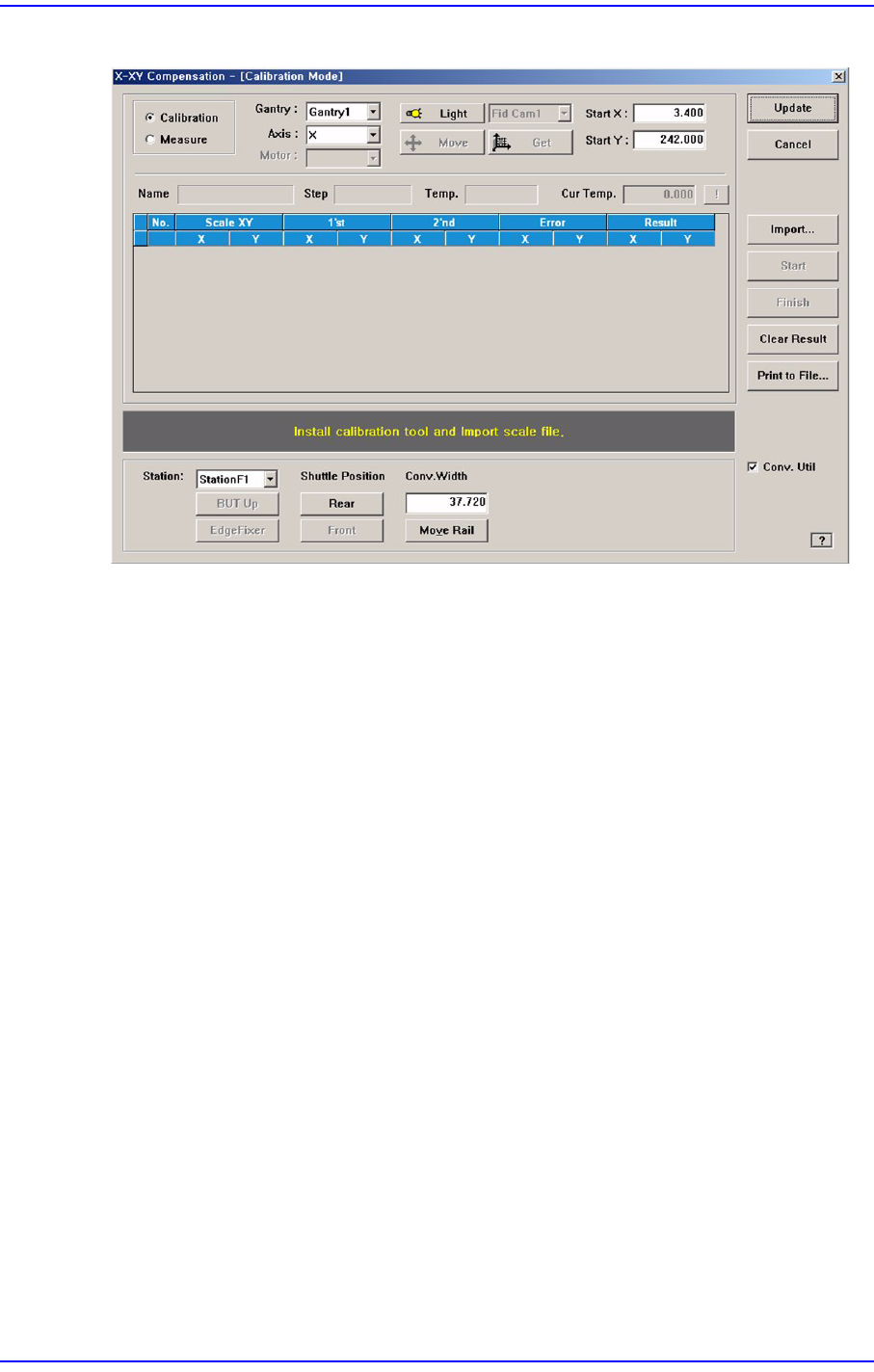 X-XY Compensation을 캘리브레이션 모드로 수행하고 결과값을 반영합니다