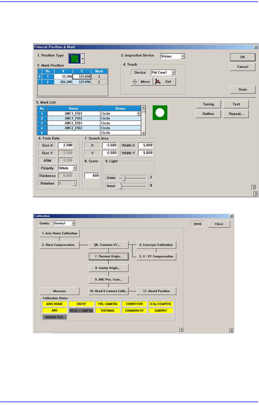 12-41 Machine Calibration Fiducial Camera Offset Calibration (CNT20 노즐 ) Head Z & R Offset Calibration (CN040 노즐 ) Head Offset Calibration Fly Camera Scale & Rotation Calibration Fly Camera Offset Calib…