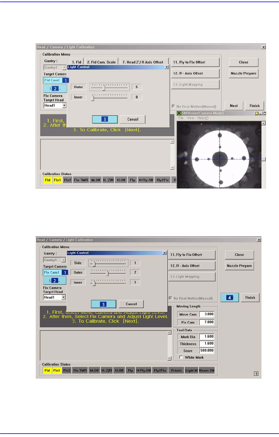 Calibration Glass상의 Fiducial Mark가 선명하게 보이도록 조명의 밝기를 조정하
