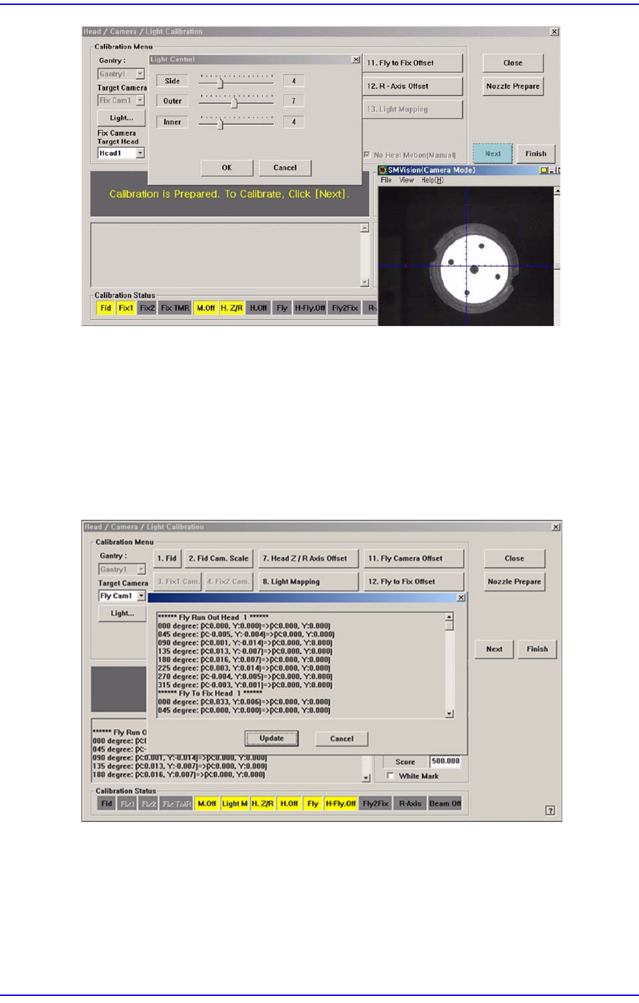12-66 Samsung Component Placer SM 411F/411FN Administrator ’ s Guide 3. 그러면 , Head Assembly 가 장비의 지정된 위치로 이동한 후 , 모든 Z 축을 하강합 니다 . 이 때 , 수동으로 삽 입되어 있는 모든 Nozzle 을 제거하십시오 . 4. “ Next Attach the Callbration T ool to Head 1…