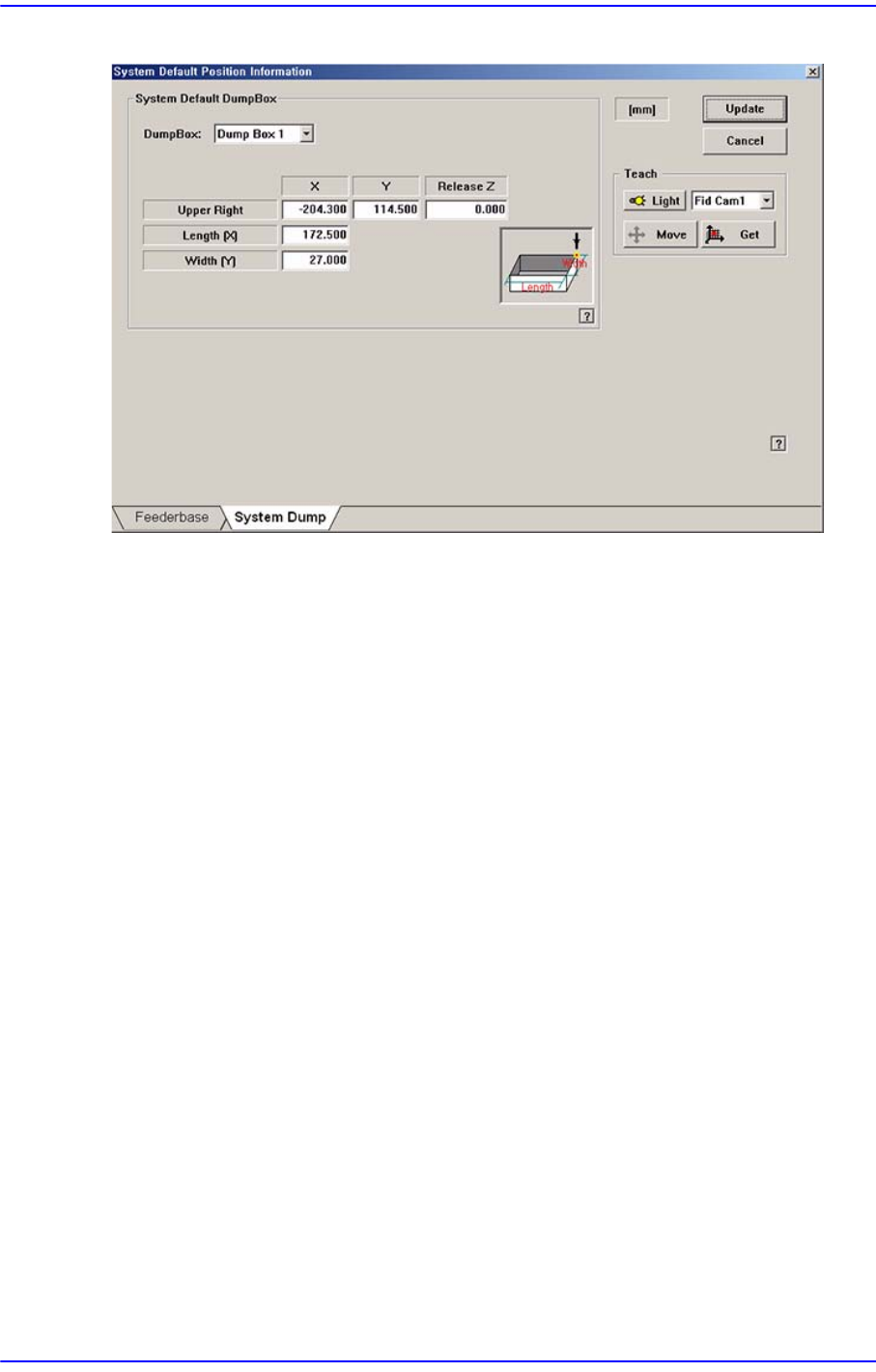 흡착한 부품을 버리는 장소인 Dump Box에 관련된 데이터를 설정합니다.