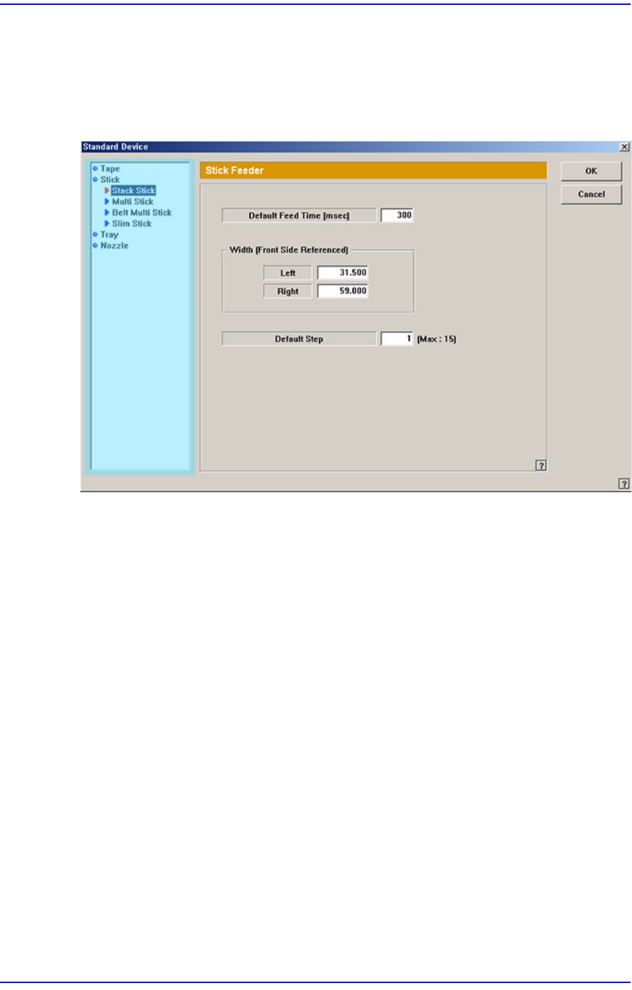 다음의 화면은 리스트박스에서 “Stick”을 선택한 경우입니다. Stick Feeder에 관한
