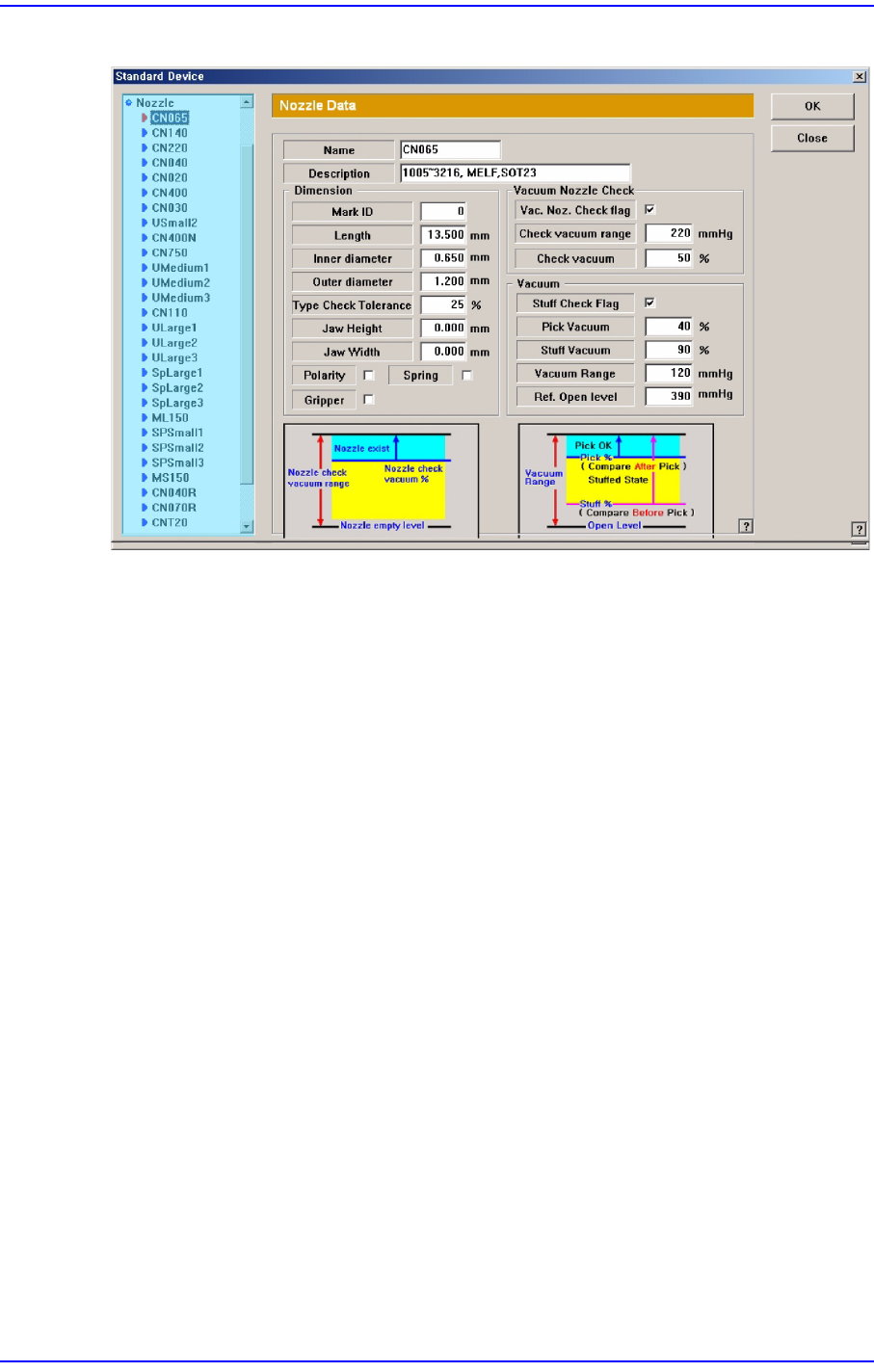 다음의 화면은 리스트박스에서 “Nozzle”을 선택한 경우입니다. Nozzle에 관한 파