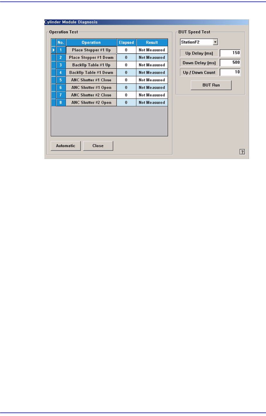 <BUT Run>: Backup Table의 상승/하강 속도 테스트를 실행합니다.