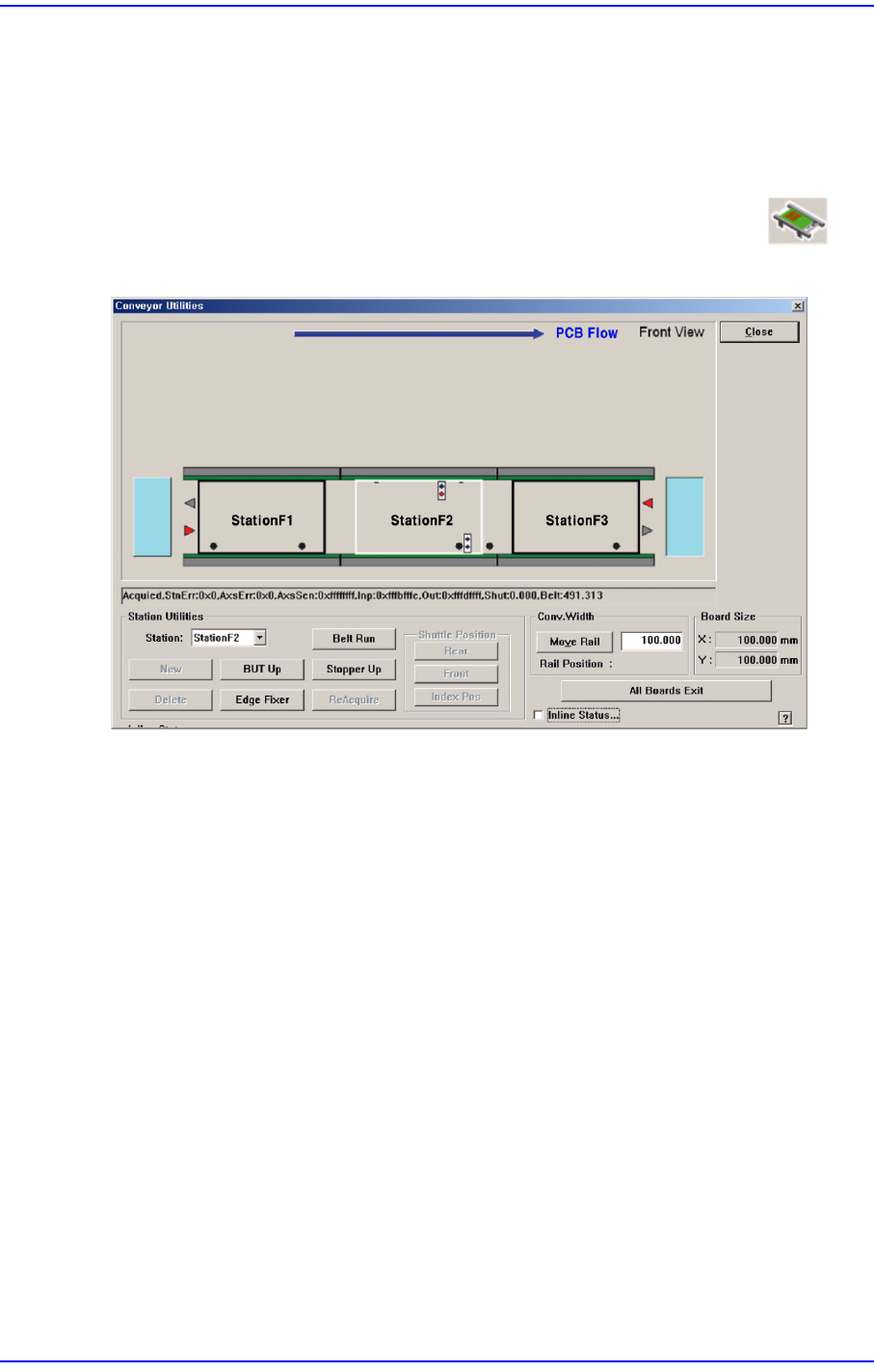14-5 Diagnosis 대화 상자를 닫습니다 . 14.2. Conveyor [F3] Conveyor 영역의 각종 장치들의 상태를 점검합니다 . T ools 바로가기 메뉴의 Icon 을 클릭한 것과 같은 기능입니다 . 자세한 사항은 “ 4.5 컨베이어 (Conveyor) ” 를 참조하시기 바랍니다 .