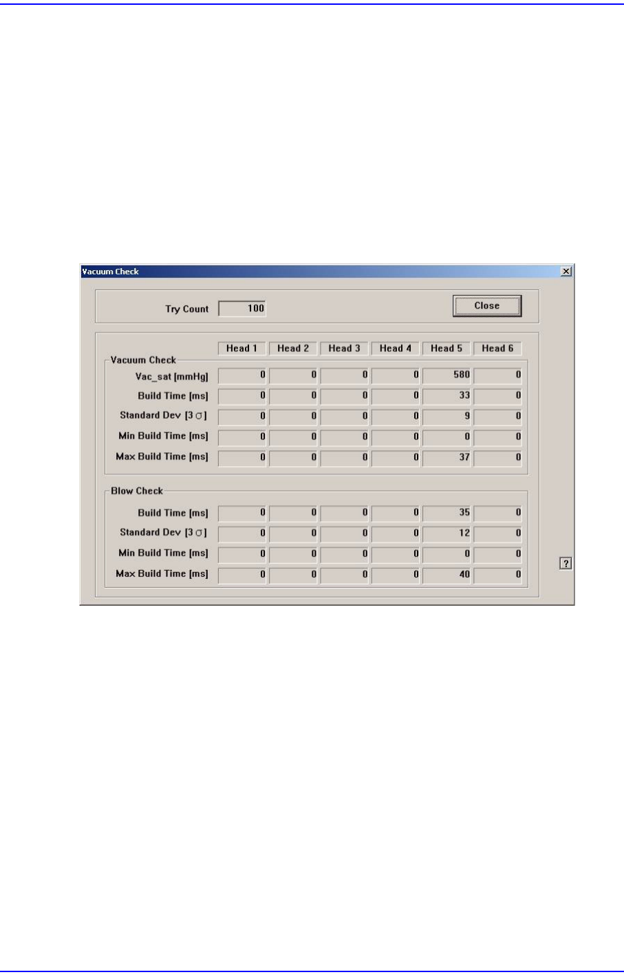 진공형성(Vacuum On) 동작 수행 후 해당 헤드의 평균적인 진공 수준을표시합니
