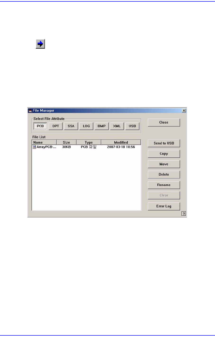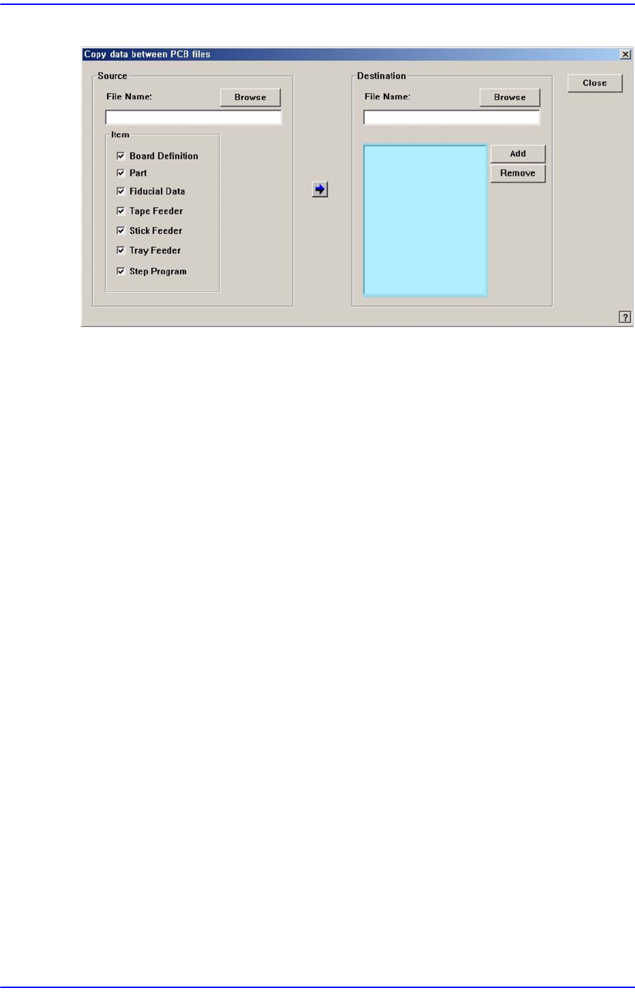 15-7 Utility PCB 파일 에 추가합니다 . <Remove> 버튼 리스트박스에서 선태된 파일을 복사된 정보를 적용 할 대상에서 제외시킵니다 . 버튼 원본 PCB 파일에 서 선택된 정보를 대상 PCB 파일로 복사합니다 . 15.4. File Man... [F5] PCB 파일의 복사 , 이동 및 삭제 등의 파일 관리를 쉽게 할 수 있도록 합니다 . 그림 15.6 “파일…