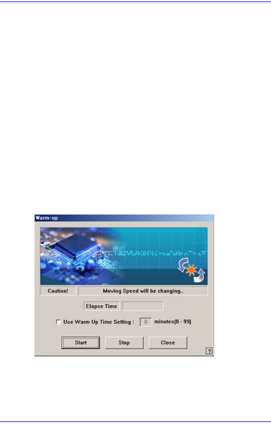<WarmUp> 메뉴는 전원 투입 후 각 구동축의 준비운동을 실행할 때 사용합니다. 이