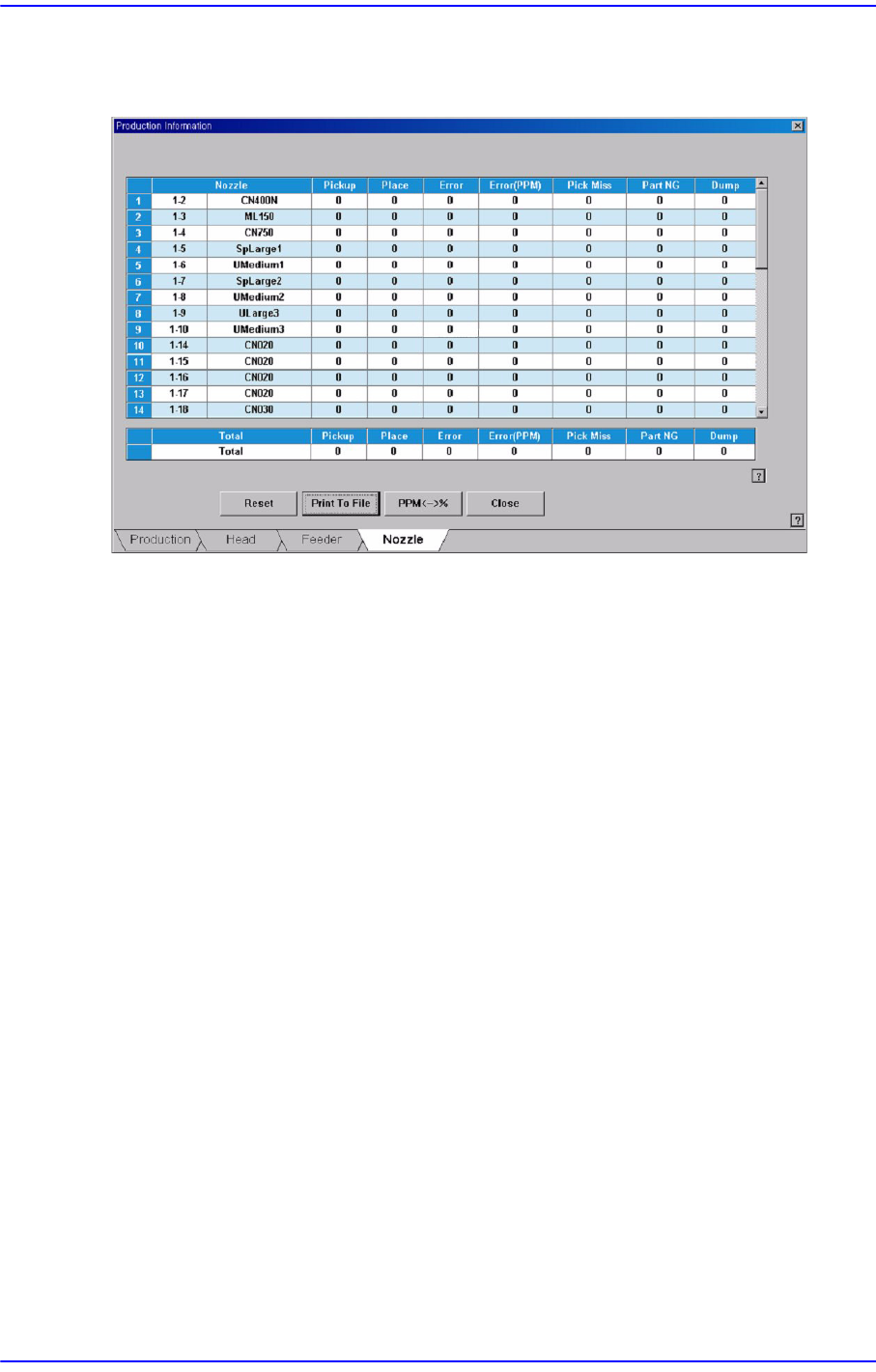 노즐에 의해 부품이 장착되지 못한 에러를 PPM단위로 표시합니다.