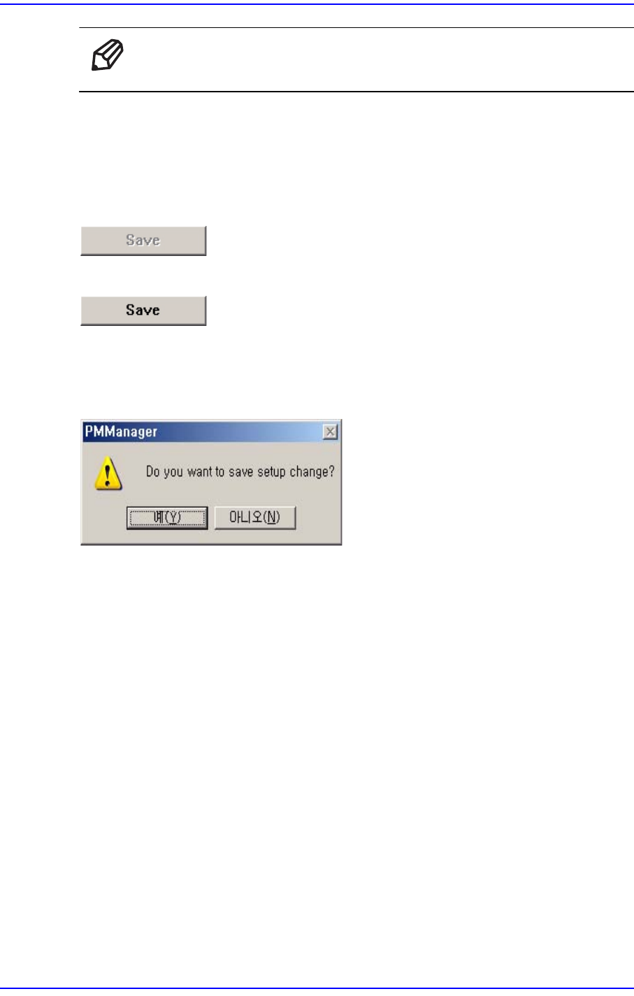 Setup 화면에서 변경된 설정사항이 있으면 <Save> 버튼이 활성화됩니다.