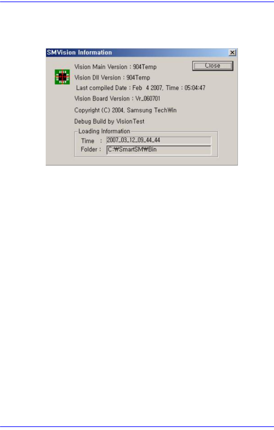 4-4 Samsung Component Placer SM 411F/411FN Administrator ’ s Guide 4.2.1.4.2. 도움말 SMV ision Info … SMV ision 의 버전 정보를 보여줍니다 .