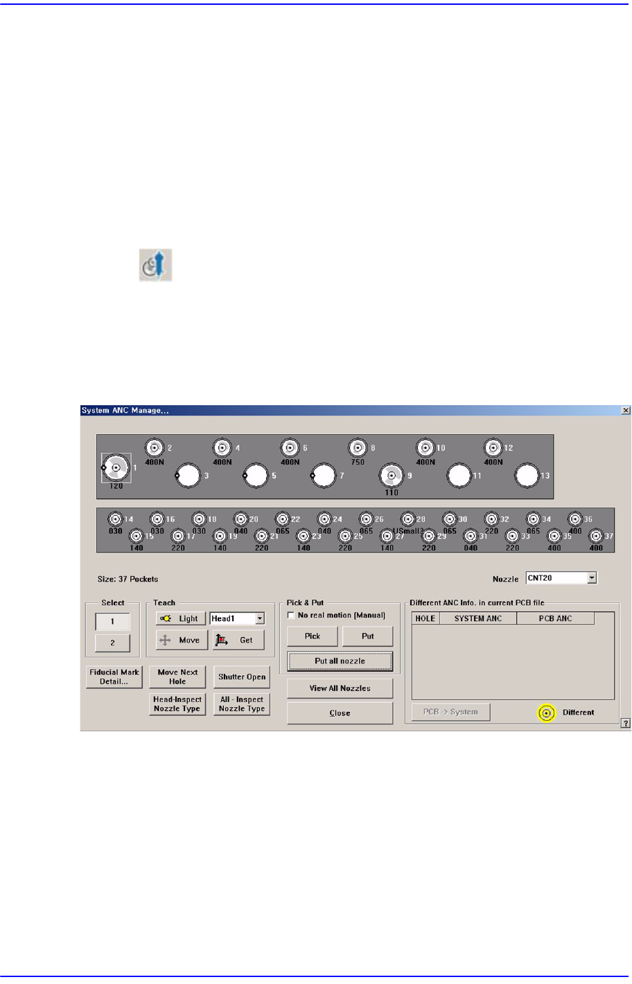 ANC(Auto Nozzle Changer)에 설치되어 있는 Nozzle의 구성과 Nozzle 흡착, 장착 기