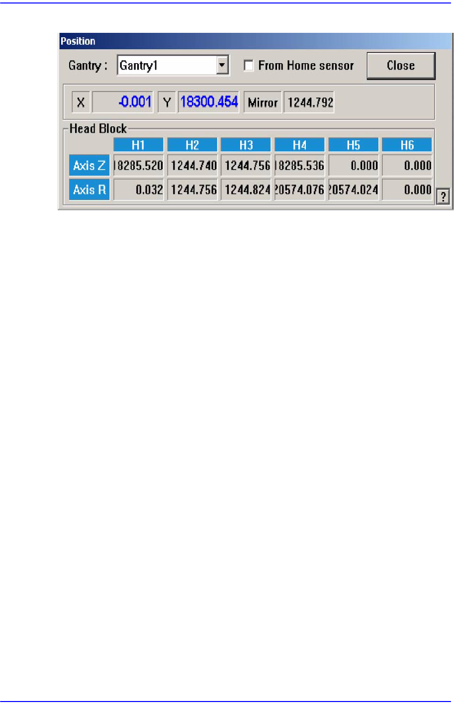좌표를 확인하려는 Gantry를 선택합니다.(Gantry1, Gantry2)