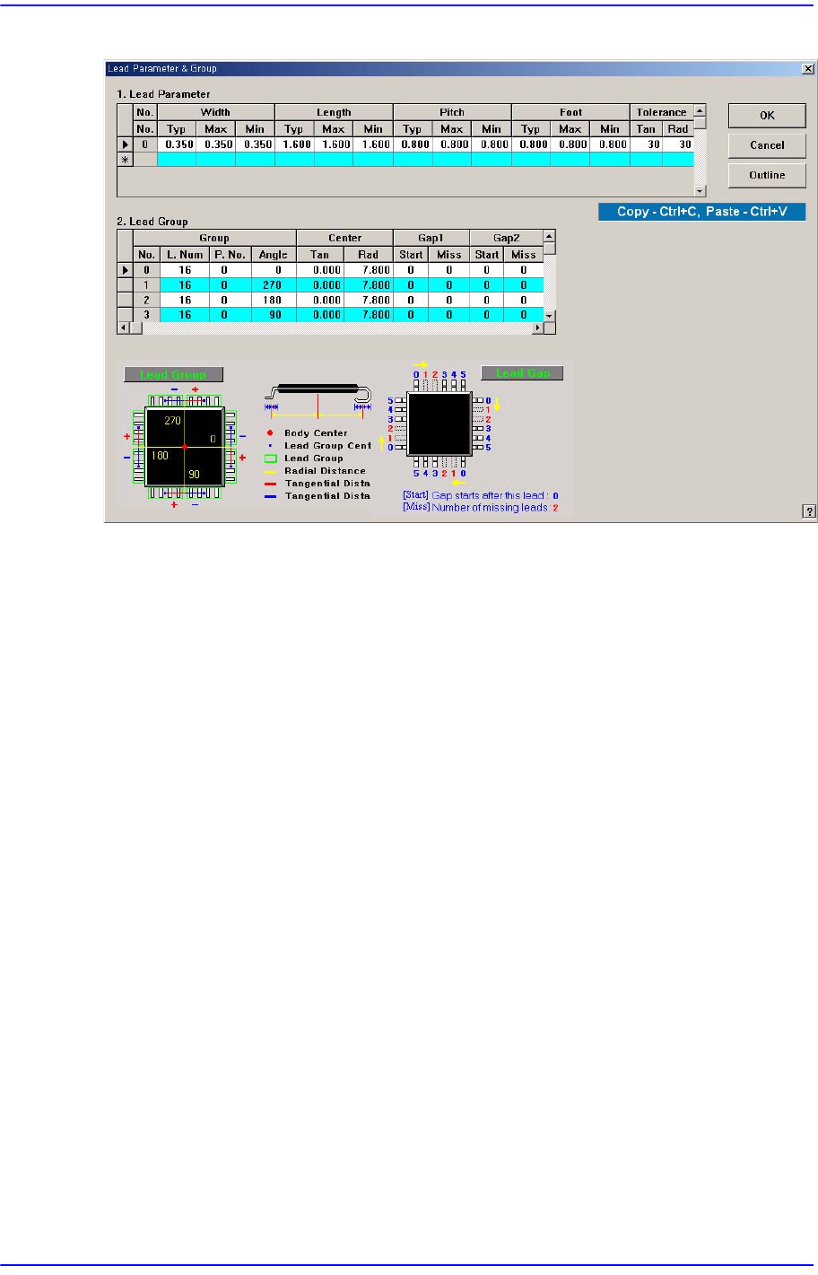 7-62 Samsung Component Placer SM 411F/411FN Administrator ’ s Guide 그림 7.26 “ User IC 의 Lead Parameter & Group ” 대화상자에서의 “ Lead Group ” 설정화면 <Lead G roup> 영역 Lead Group 을 설정합니 다 . <Group No.> 열 Lead G…