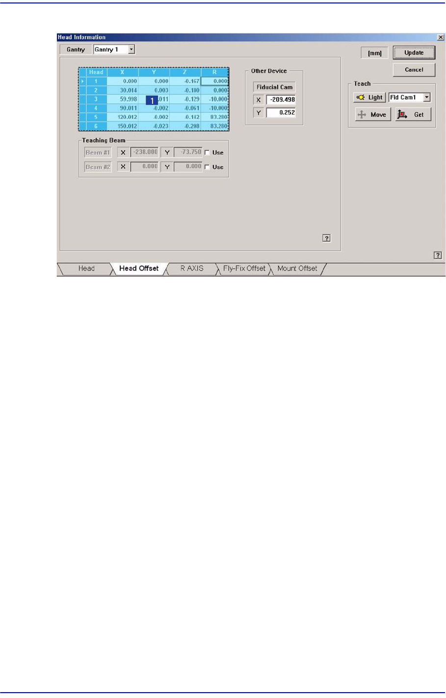각 Head의 기구적 특성으로 인한 Offset을 설정합니다. 여기서 나타나는 Z, R축을