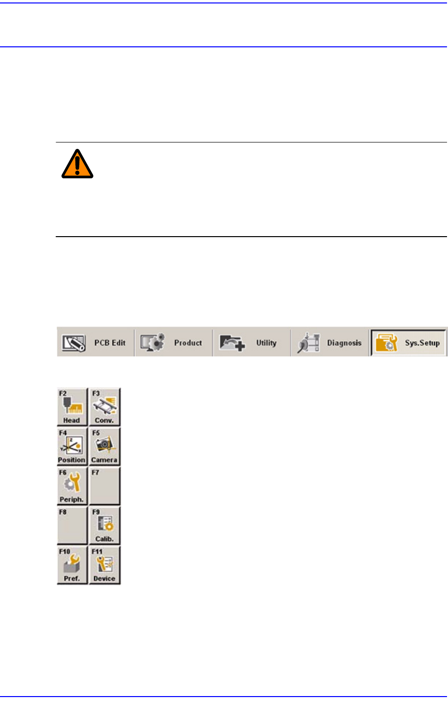 <Sys. Setup>명령의 하위 메뉴들을 선택하면 해당하는 대화상자가 화면에 표시됩니