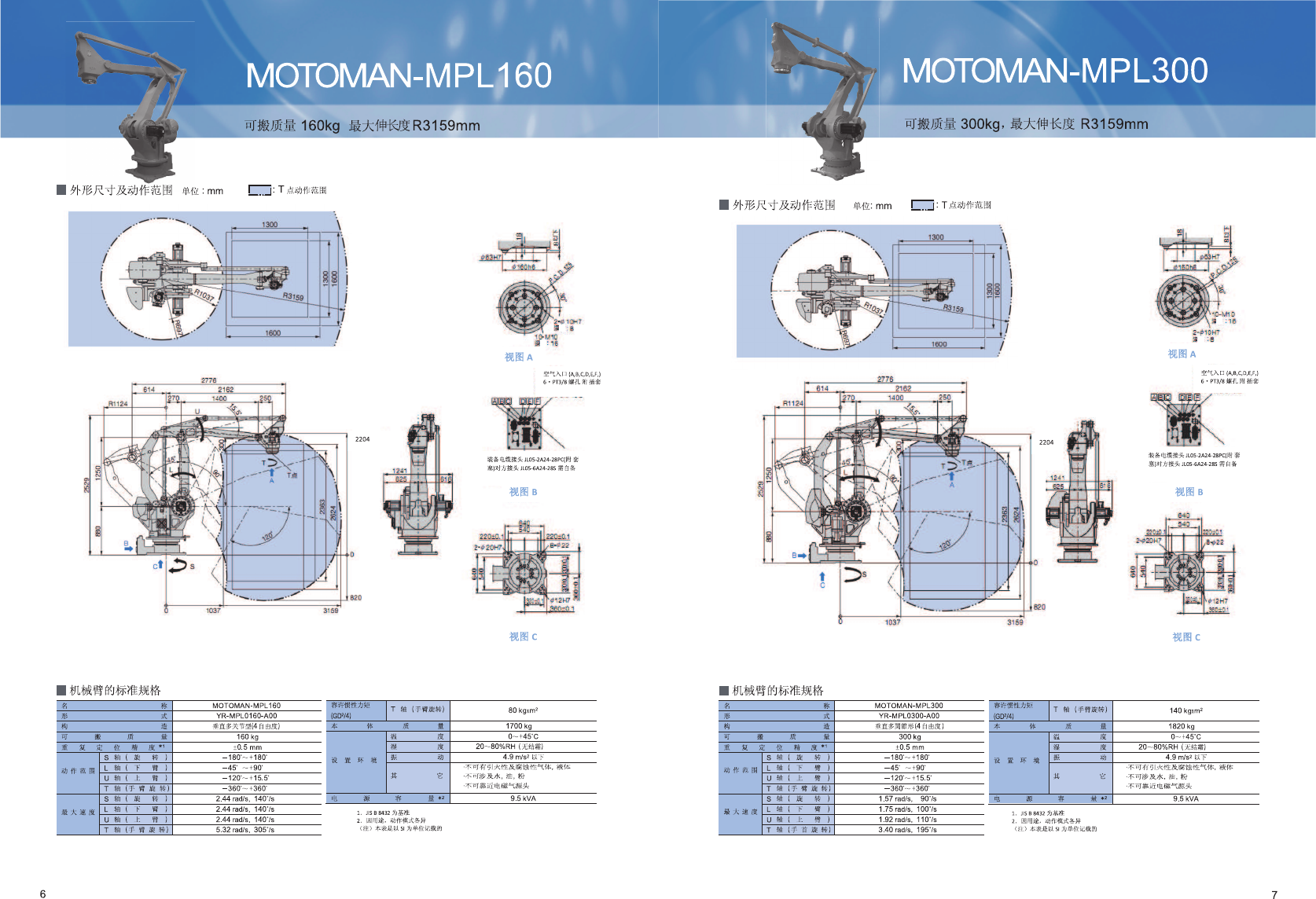 MOTOMAN - MPL 300 MOTOMAN - MPL 160 可搬质量 300 kg , 最大伸长度 R 3159 mm 可搬质量 160 kg 最大伸长度 R 3159 mm ■ 外 形 尺 寸 及 动 作 范 围 单 位 丁点动作范围 : m m I 外 形 尺 寸 及 动 作 范 围 单 位 : m m ! | : T 点动作范围 I I 10 - M 10 3 : 16 20 H 7 S : S 视图 A 视图 A 空…