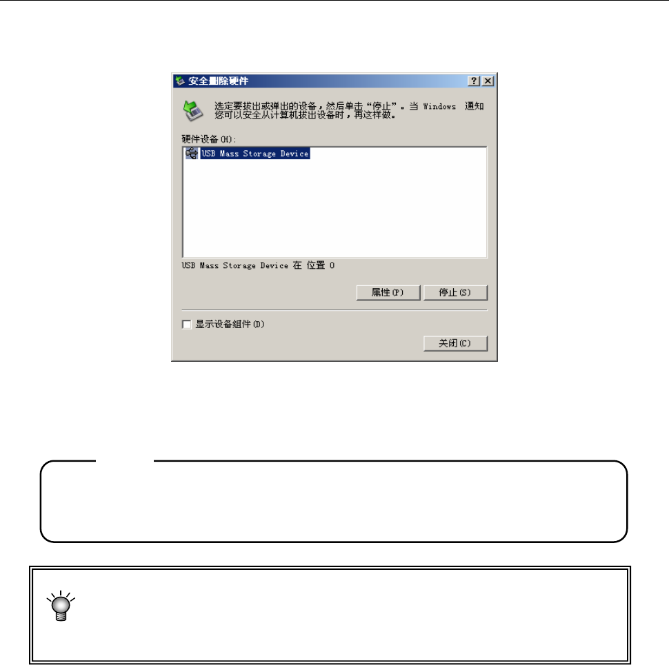 (1)从菜单上的“文件”选择“硬件安全拆卸”后,会显示如下“安全删除硬件”对话框。