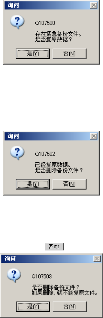 重新启动系统时,将检查停电时的备份文件,若文件存在,则会显示询问画面。