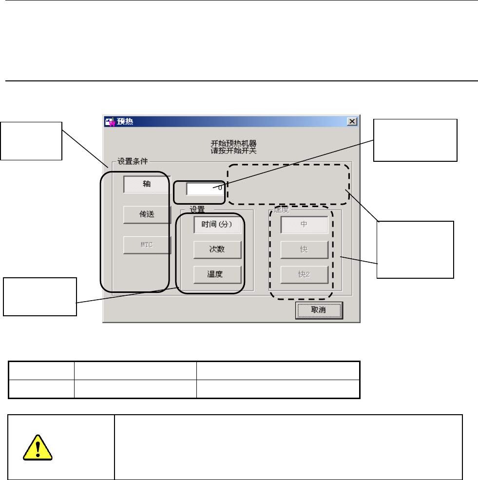预热对象,从轴、传送、MTC 中选择(初始设置为“轴”)一项。