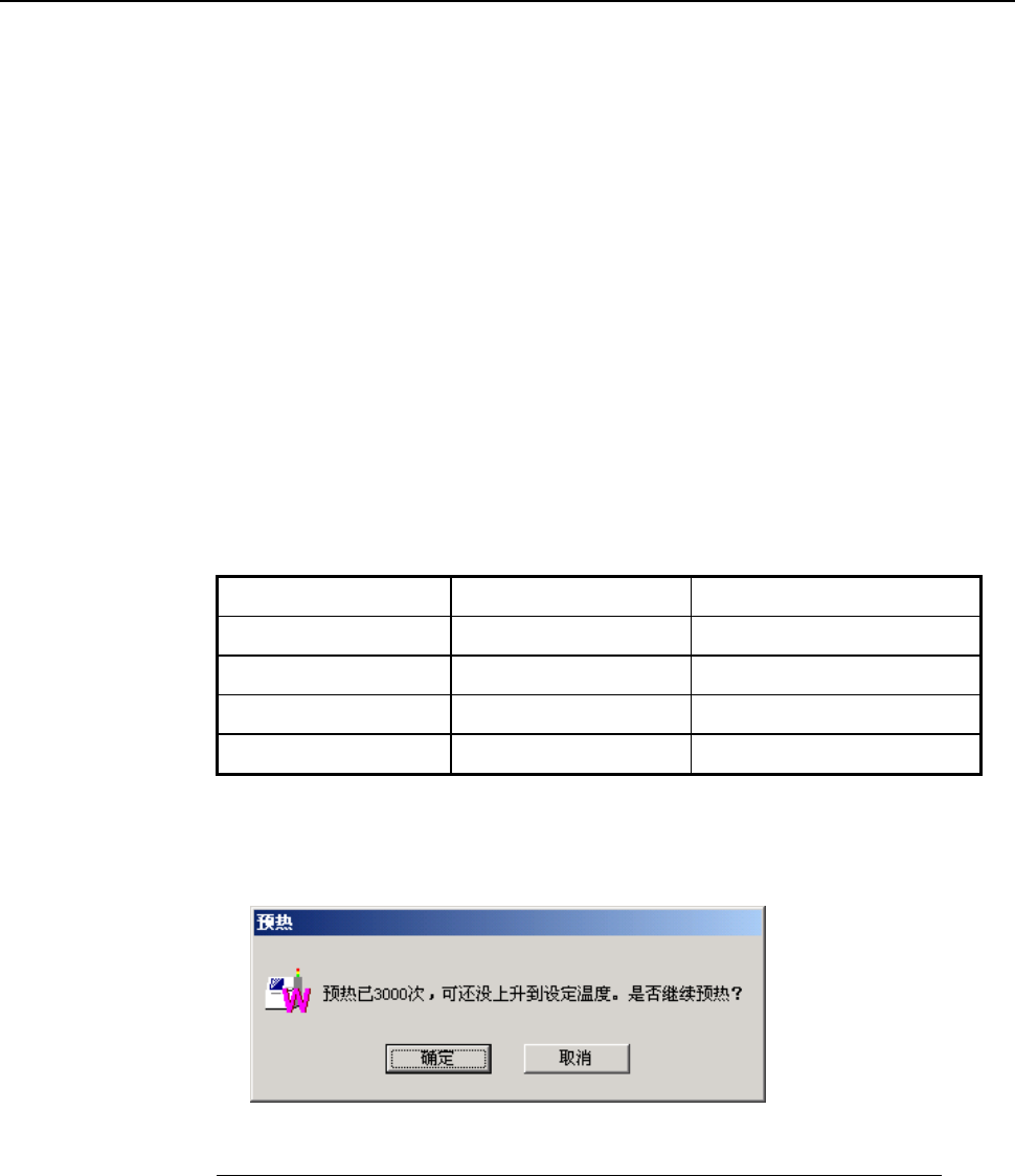 达不到所设置温度时,每进行 3000 次预热操作,会显示询问框,问是否要持续进行预