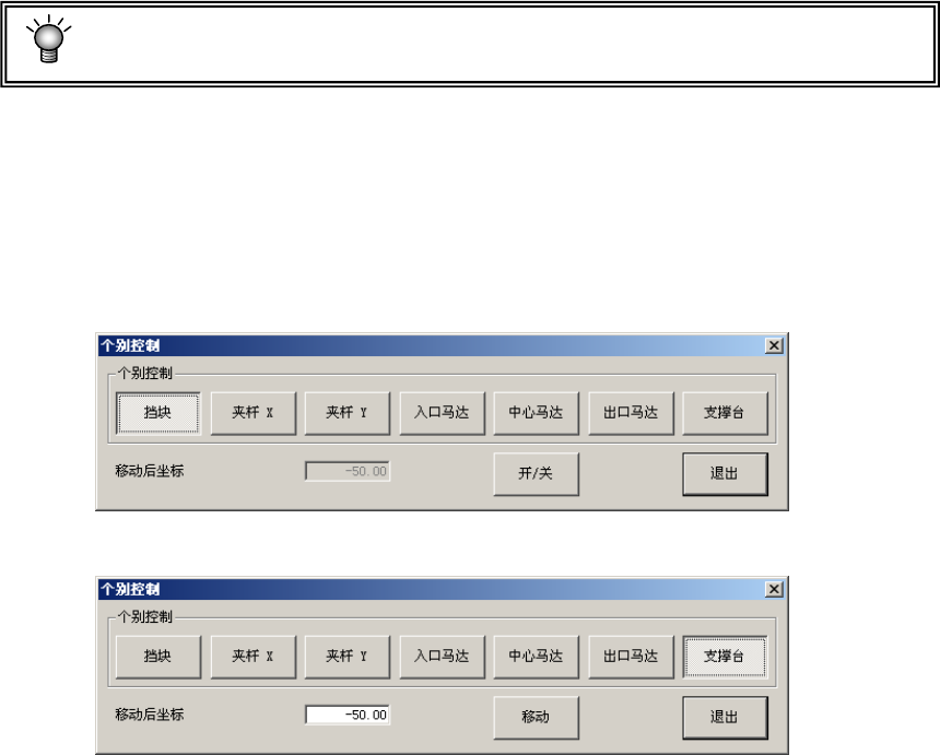 ● 在 “个别控制”的项目选择“支撑台”时,还可指定“移动后坐标”(支撑台上升时