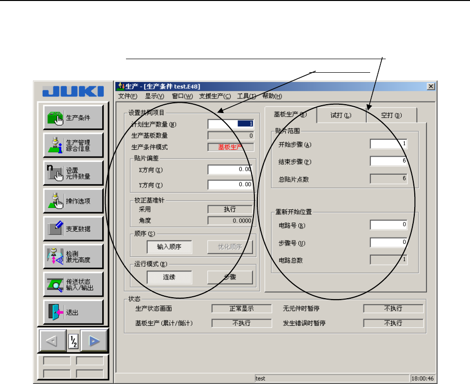 根据“基板生产”、“试打”、“空打”各种生产模式,分别设定各自的生产条件。