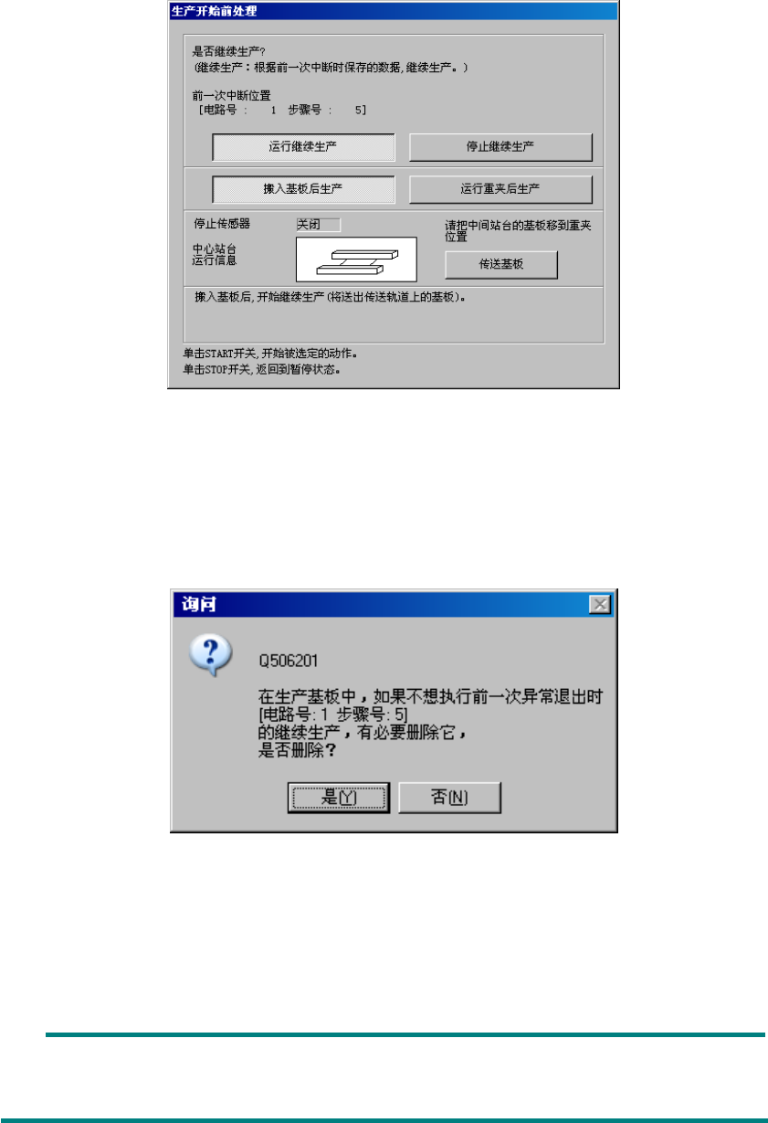 选择“是”时,继续生产数据即被删除,不能执行上次异常终止时的“继续生产”。