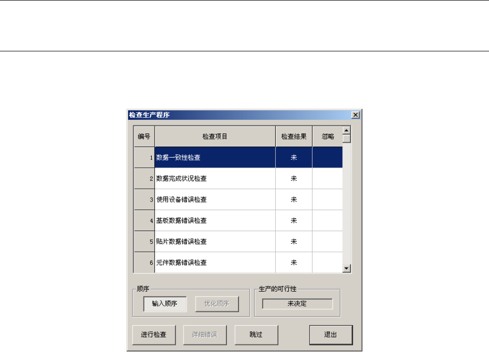 开始生产前点击菜单栏的“生产支援”/“检查生产程序”后,显示检查生产程序画面。