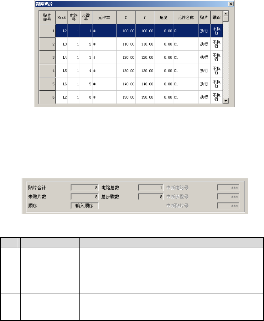 为了进行贴片跟踪,按照贴片编号顺序显示贴片元件信息。