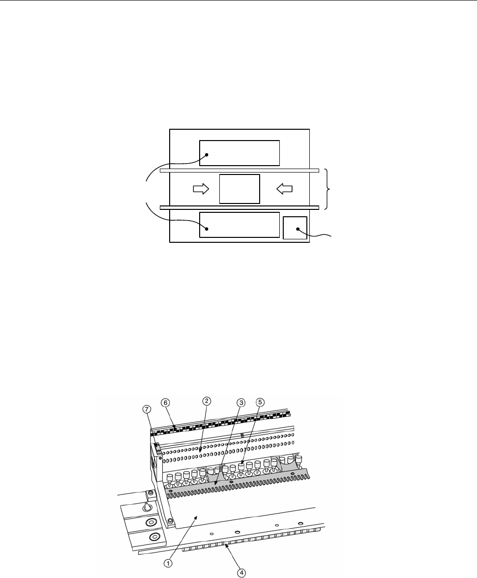 ① 送料器台 ④ 锁定轴 ⑦ 台架标记