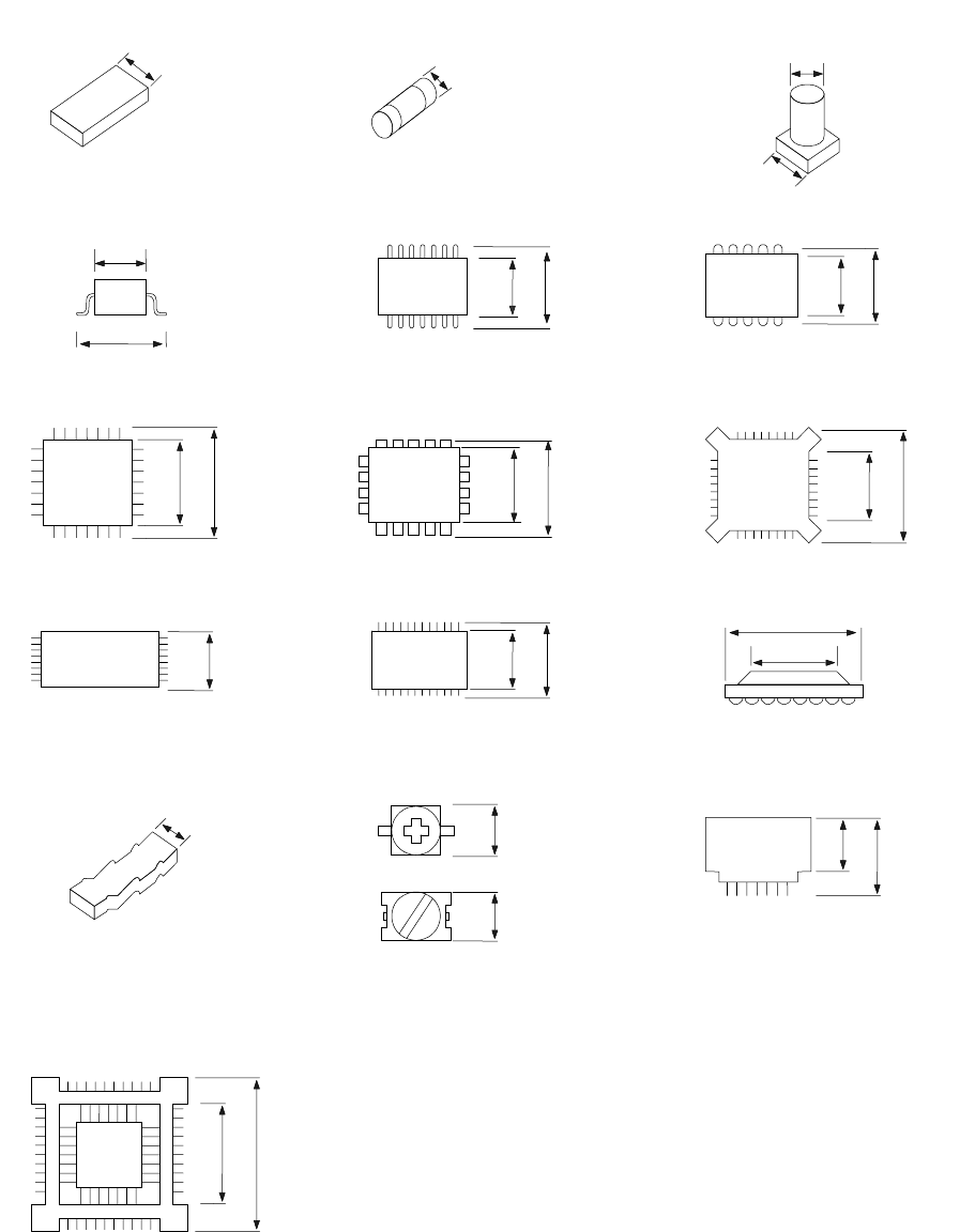 第 1 部 基本编 第 1 章 设备概要 1-17 3) 各种元件的最小元件宽度(D) A D A D W D A D = A A D A D A D A D A D = A A A D = A A D A D A D A D = A D A A D = A + 0.5mm (4) SOT (5) SOP (6) SOJ (7) QFP (8) PLCC (9) BQFP (10) TSOP (1 1) TSOP2 (12) BGA (…