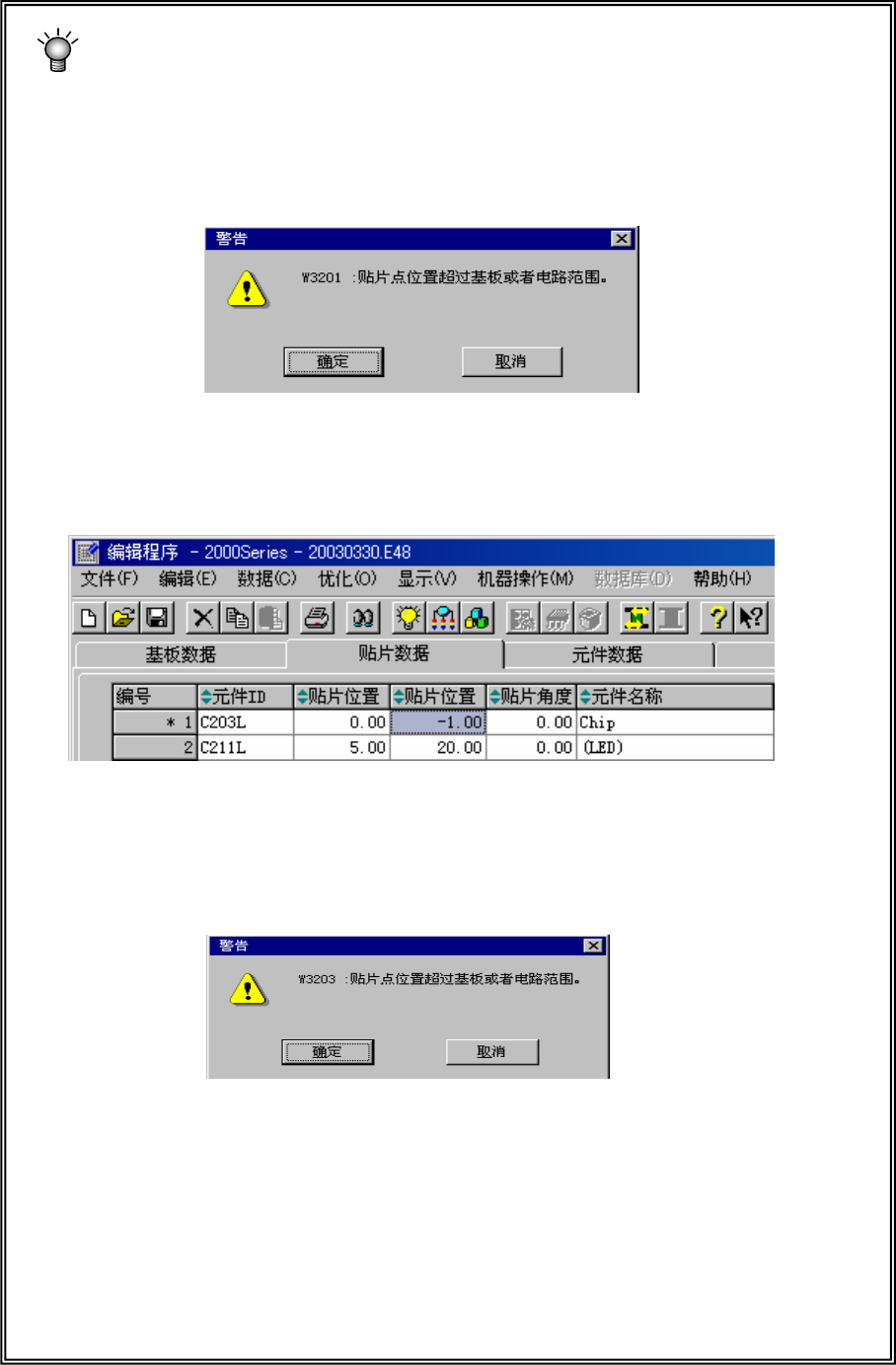 ※ 发生范围检查错误时,请先检查“贴片数据”,如果没有问题,请再检查各“基板数据”