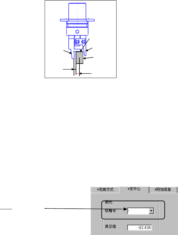 ① 抓取位置: “Y”项,输入元件中心与抓取吸嘴固定侧手臂抓取面中心的偏移值(见
