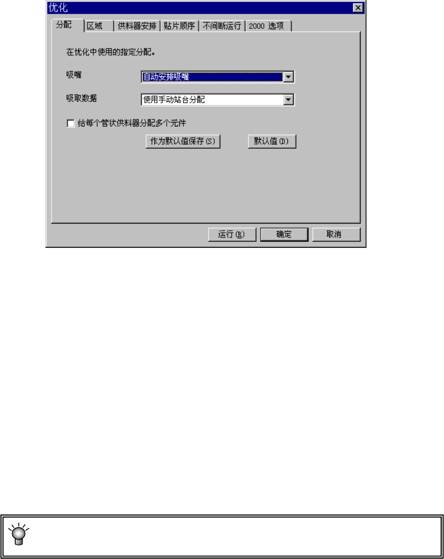 ①分配自动选择: 已指定的供料器按指定安排,只对“自动选择”的供料器进行优化。